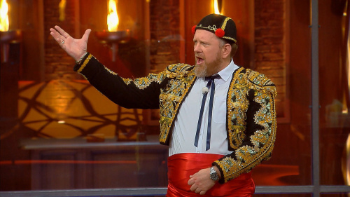 Новая неделя началась с испанской тематики: страстного фламенко и шефа в образе тореадора. Участникам предстояло готовить блюда испанской кухни на "адской карусели". Оценивать их мастерство был приглашен эксперт по испанской кухне, шеф-повар Виктор Лобзин. В итоге победила команда "мандаринок", а проигравших ждало наказание в виде "укрощения быка".