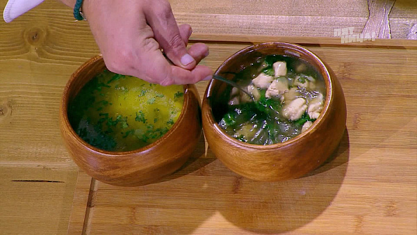 Первый тур был посвящен традиционной кавказской кухне. Под клошами скрывались блюда, которые участникам предстояло узнать на вкус и в точности повторить по рецептам за час. К сожалению, Ахлау и Адель не справились с заданием и выбыли из соревнования первыми.