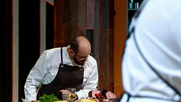 Первый этап: Под накрытыми колпаками (клошами) для профессионалов были спрятаны разнообразные закуски. За час им предстояло приготовить и эффектно подать эти блюда в ресторанном стиле. Наихудшие результаты показали Егор и Евгений, покинув соревнование на начальном этапе.