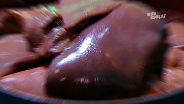 Далее, в черных ящиках их ждала печень. Задача – создать сезонное блюдо, раскрывающее ее вкус. Евгений и Александр получили наименьшее количество баллов и выбыли на этом этапе.