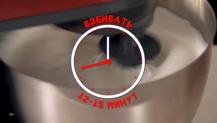В дежу закладываем яичные белки, сахарный песок и сахарную пудру, взбиваем до состояния "пиков". -