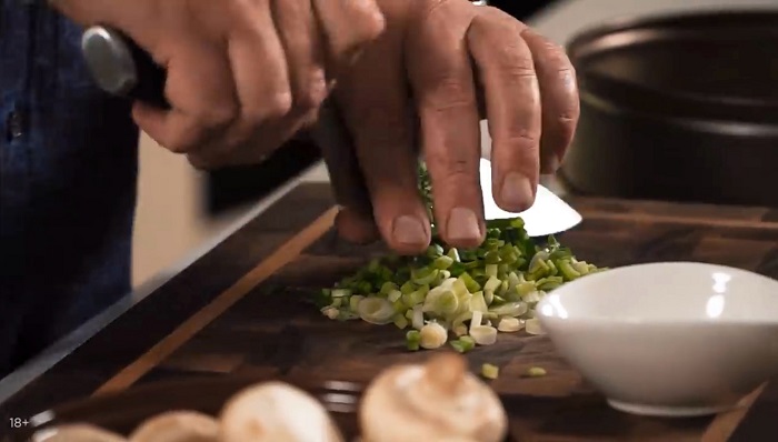 Мелко нарезаем зелёный лук. -