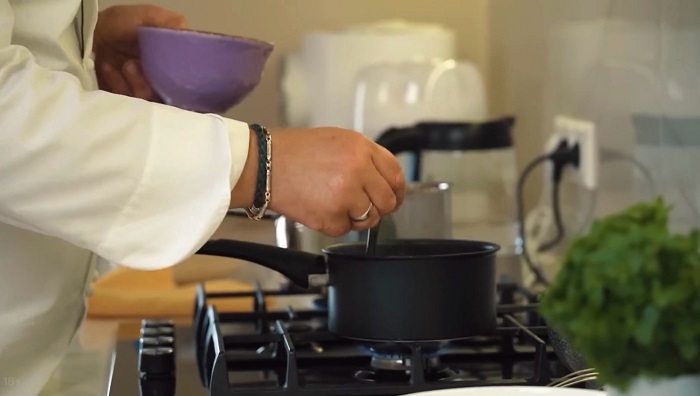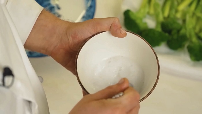 Крахмал растворяем в воде, добавляем в соус для загущения, а затем убираем в холодное место, для того чтобы он остыл. -
