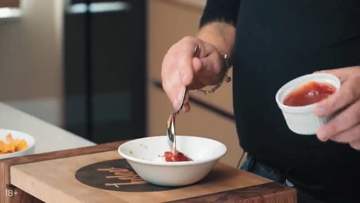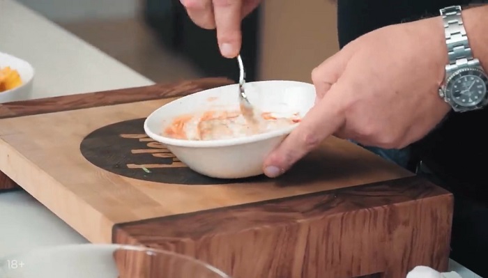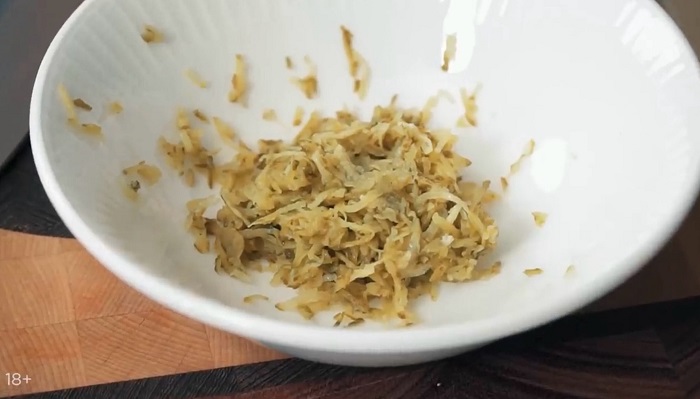 Для соуса на мелкой терке натираем корнишоны, добавляем к ним немного майонеза и кетчупа, перемешиваем. -