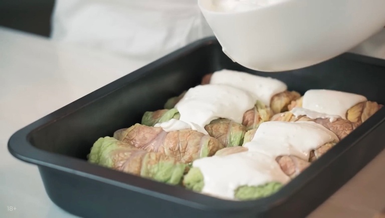 Голубцы по-Ивлевски готовы. Подавать со сметаной и свежей петрушкой!