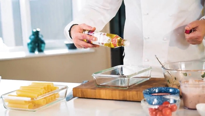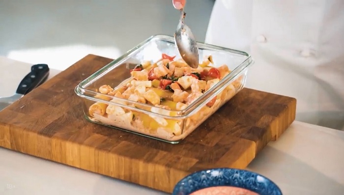 Форму заворачиваем фольгой и отправляем нашу пасту в духовку на 30 минут при 180 градусах. Паста каннеллони с креветками от шефа готова!