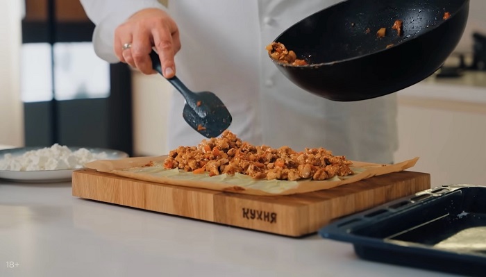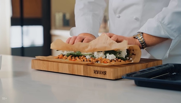 Картофельный рулет с курицей, сыром и шпинатом - рецепт от Константина Ивлева
