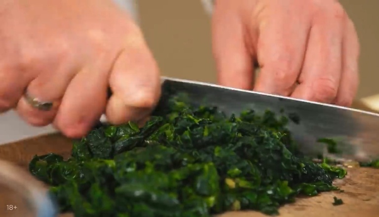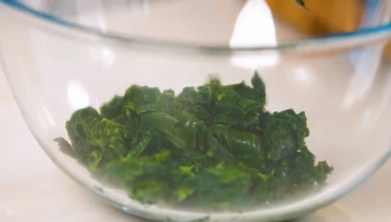 Свежемороженный шпинат нарезать не сильно мелко. -