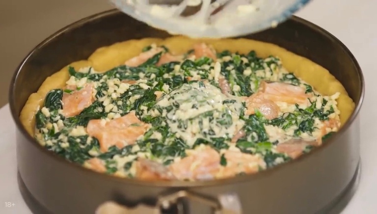 Киш Лорен с лососем и шпинатом - рецепт от Константина Ивлева