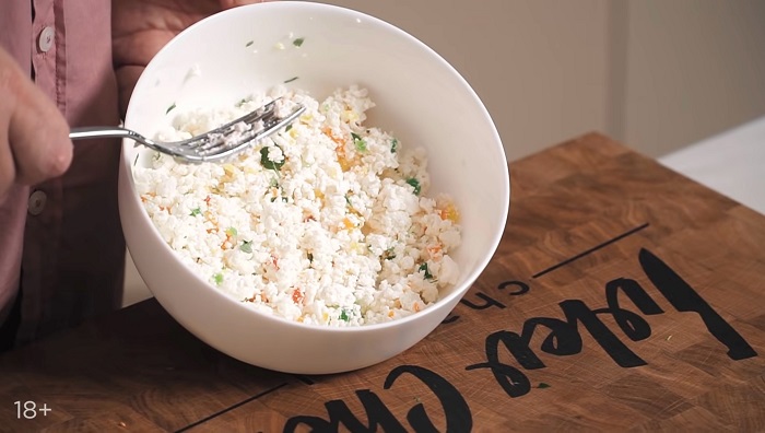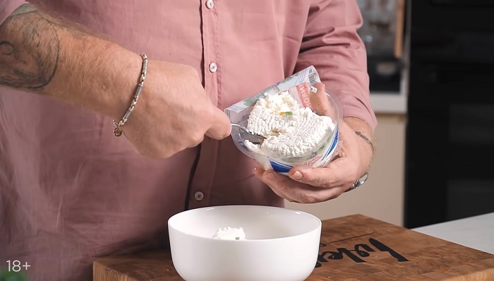 Для начинки творог замешиваем с цукатами и мятой. -