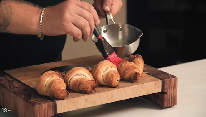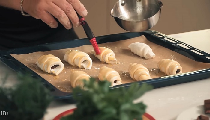 Достаем круассаны из печи, еще раз смазываем топленым сливочным маслом. -