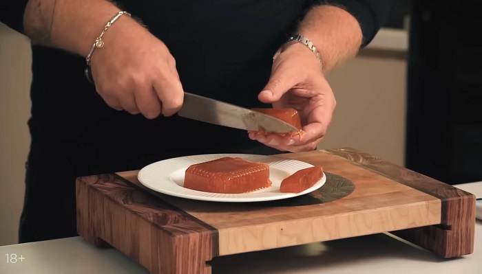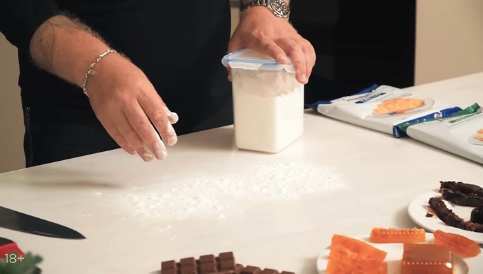 Для начала приготовим начинку. Нарезаем мармелад и шоколад. -