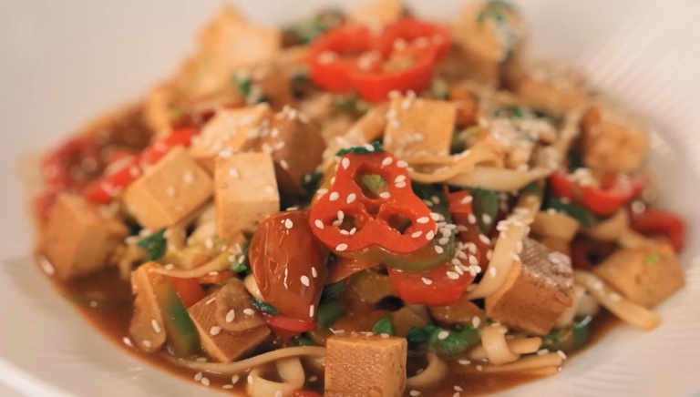 Лапша удон с тофу и овощами - рецепт от Константина Ивлева