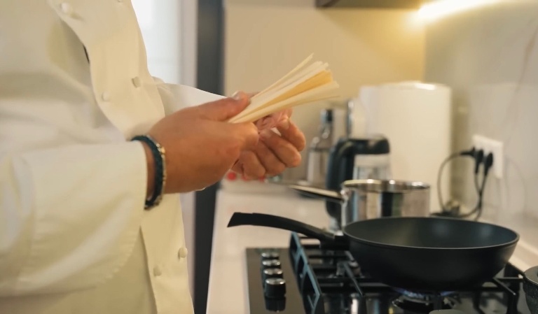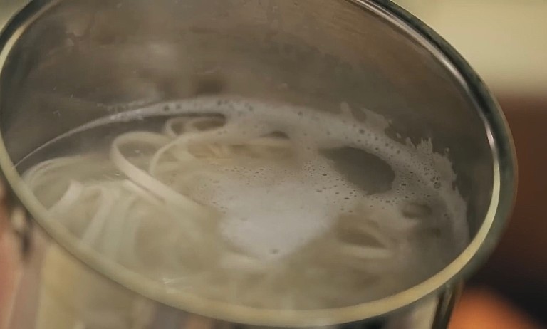 Удон отправим вариться в кипящую воду на 6-7 минут. -