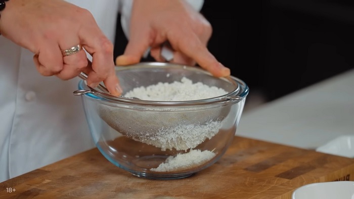 Творог проминаем через сито чтобы масса была более эластичная и без комочков. -