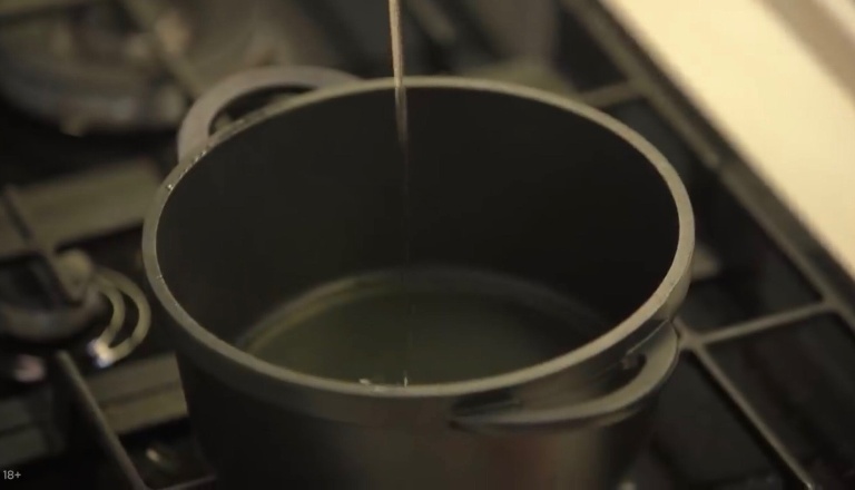 В кастрюлю вольём достаточного количества оливкового масла и сразу закинем в него лук, при среднем огне прижариваем до золотистого цвета. -
