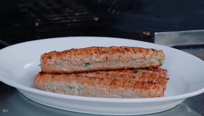 Выкладываем люля без пергамента на решётку и начинаем обжаривать на грилле либо мангале. Жарим до готовности с двух сторон. Вот такие сочные и вкусные нетипичные люля от шефа у нас получились. Приятного аппетита.