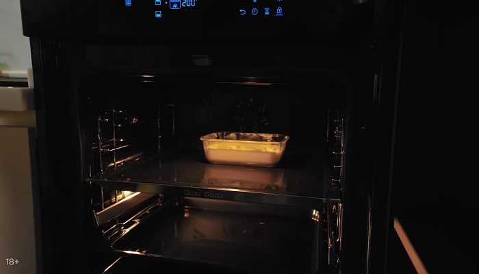 Переливаем все это в лоток для запекания и отправляем в разогретую до 200 градусов духовку на 15-20 минут. -