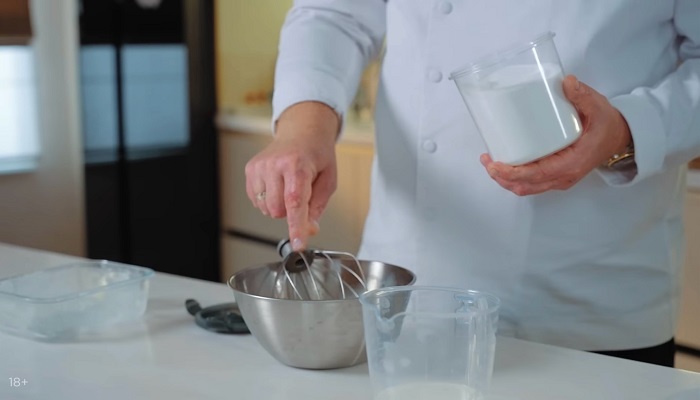 Добавляем соли по вкусу, молока и продолжаем взбивать. -