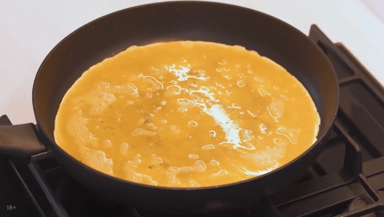 На оливковом масале жарим омлет. -