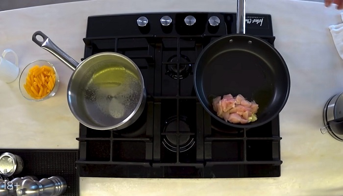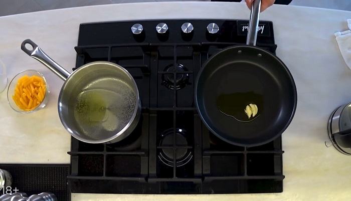 В подсоленной воде с небольшим количеством оливкового масла отвариваем пасту. -