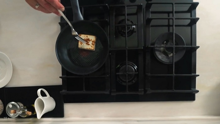 Сыр халуми обжариваем на на растительном масле с двух сторон до появления корочки. -
