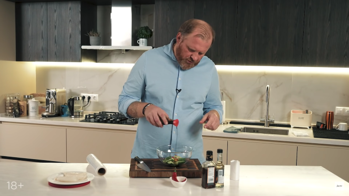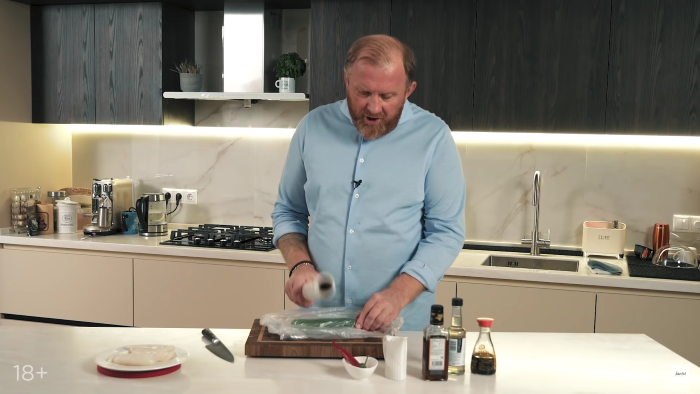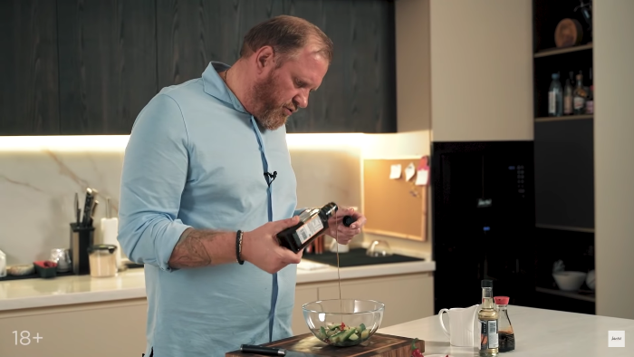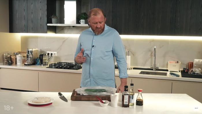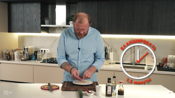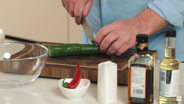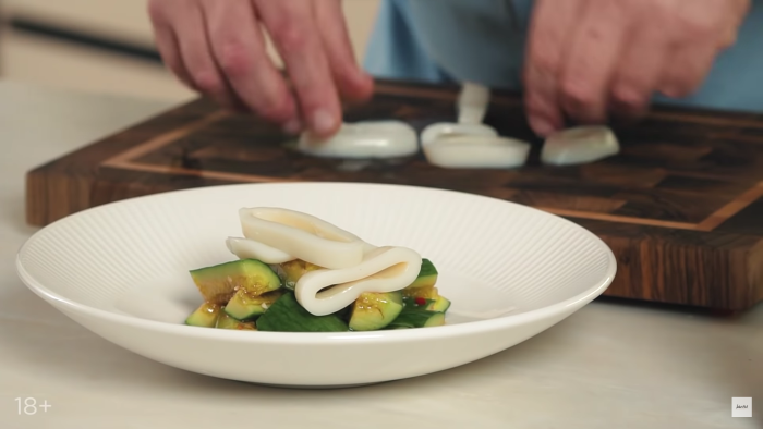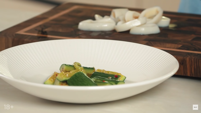 Салат из битых огурцов с кальмаром - рецепт от Константина Ивлева