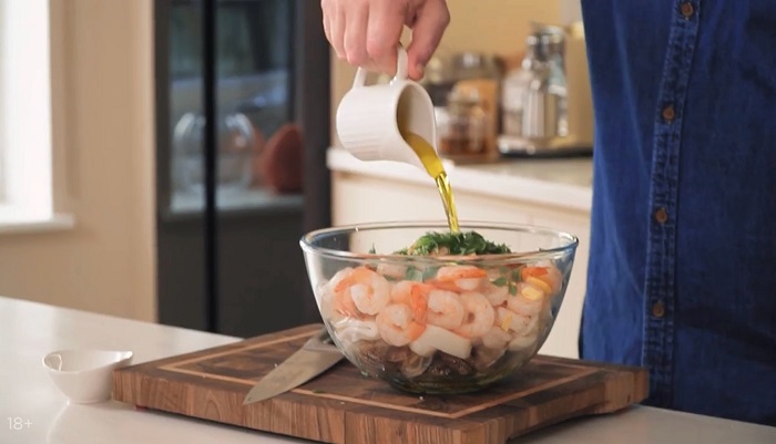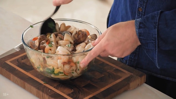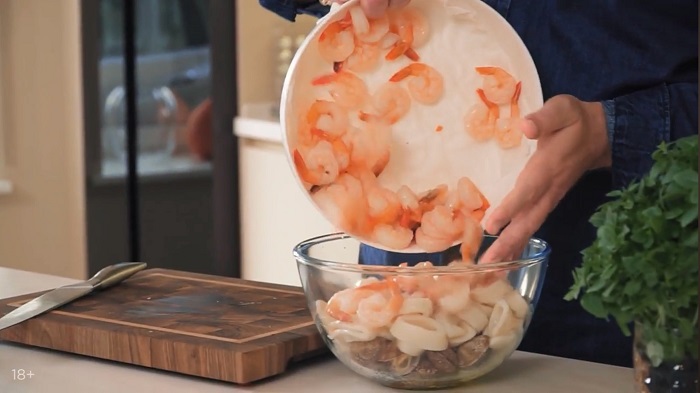 Салат из кальмара и креветок - рецепт от Константина Ивлева