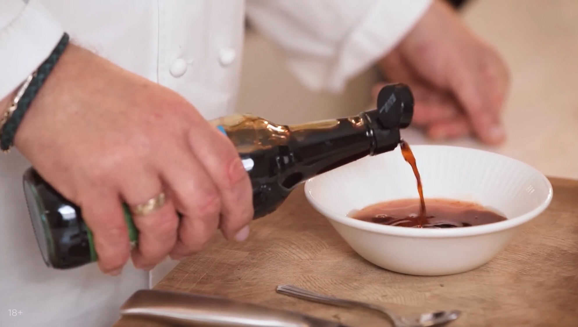 Для начала сделаем заправку; в сладкий чилли соус выжмем сок лайма, добавим соевого соуса, кунжутного масла и хорошо перемешаем соус. -