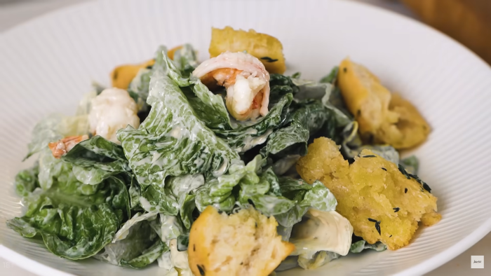 Салат цезарь с креветками - рецепт от Константина Ивлева