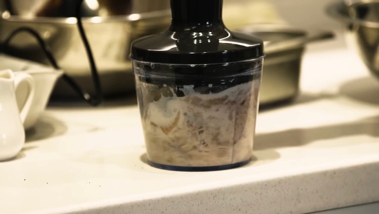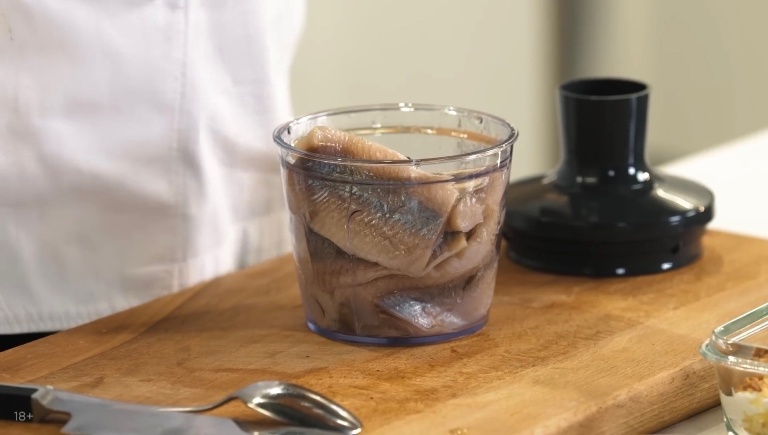 Филе сельди выкладываем в блендер,заливаем молоком и пробиваем до кремообразного состояния. -