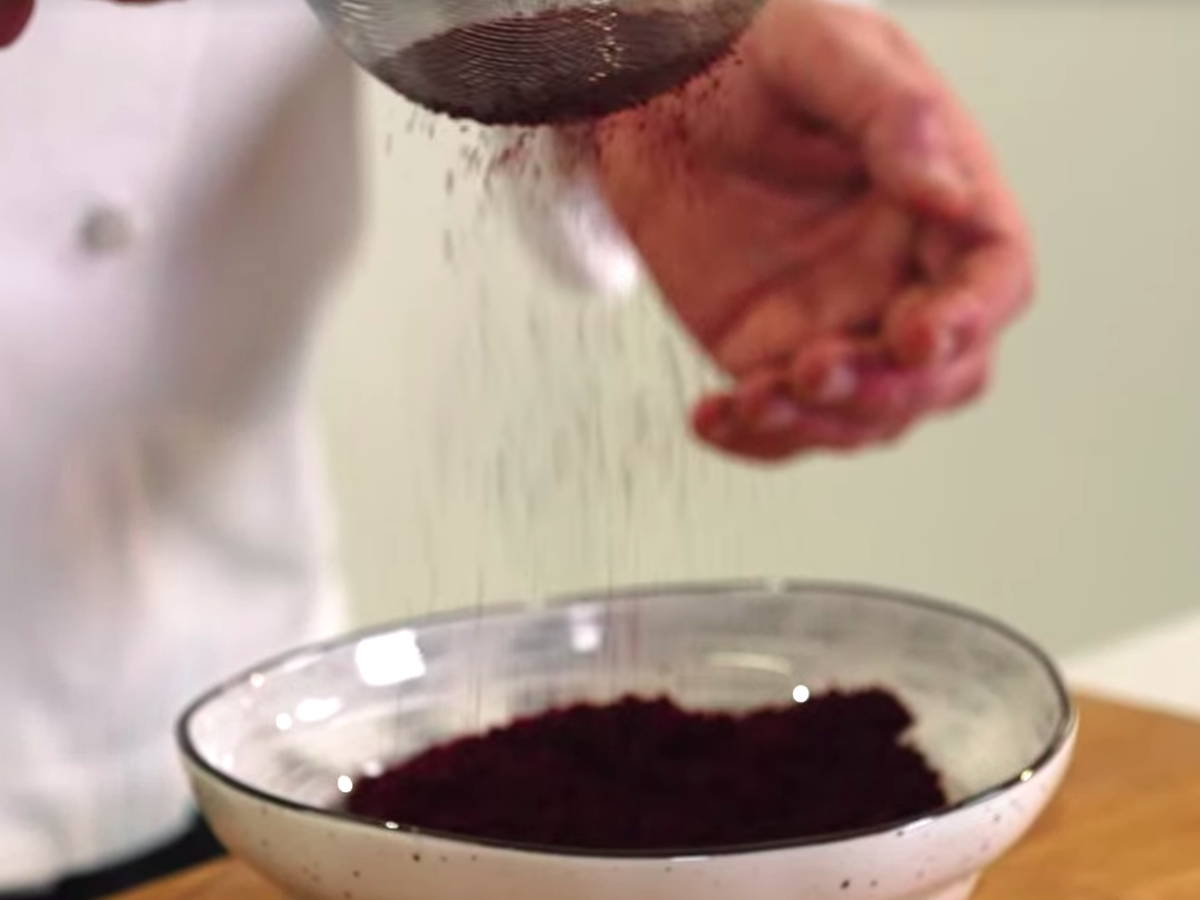 Подготовка свекольной пудры: Измельчите свеклу в блендере до состояния мелкой пудры. -