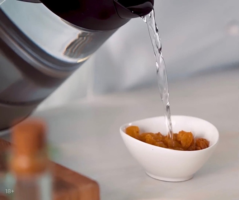Изюм залить кипятком, чтобы он набух. -