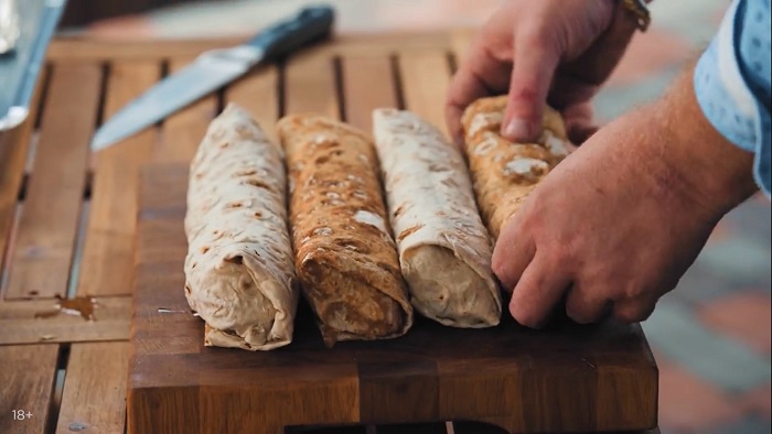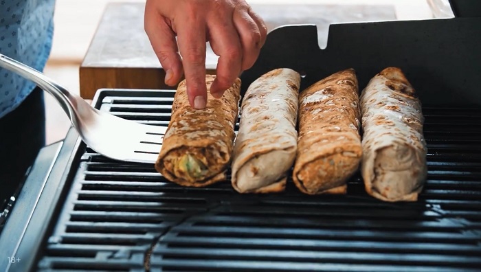 Каждую шаурму слегка прижариваем на гриле с двух сторон. -