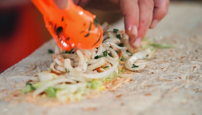 Шаурма с креветками и кальмарами - рецепт от Константина Ивлева