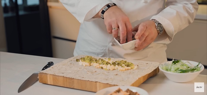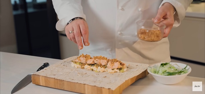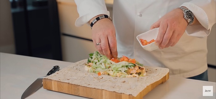 Шаурма с семгой и яичным тартаром - рецепт от Константина Ивлева