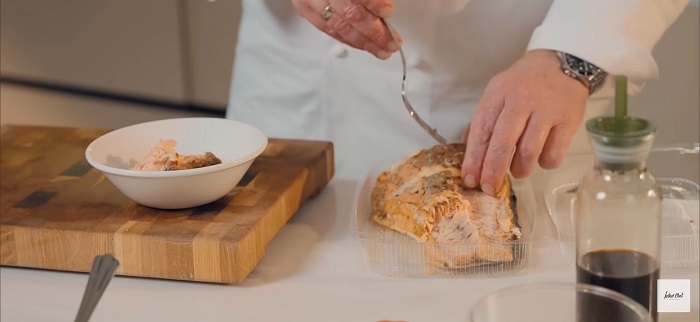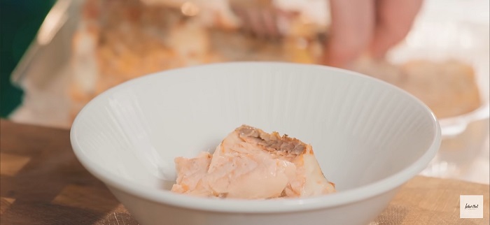 Сёмгу разбираем на крупные кусочки. -