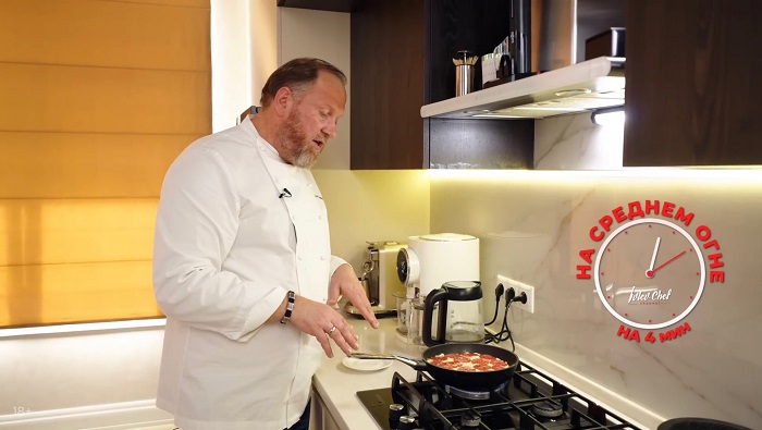 Отправляем пиццу прямо в сковороде в духовку, разогретую до 180 градусов, на 20-25 минут. Вот такая вкусная и красивая пицца от шефа у нас получилась! Прямо как в школе.