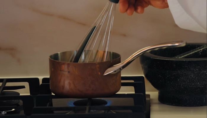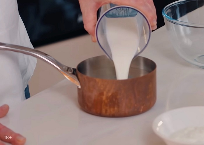 Молоко выливаем в сотейник, ставим на огонь подогреваться, добавляем дрожжи. -