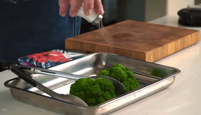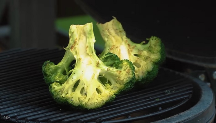 Обжариваем брокколи на гриле по 5 минут с каждой стороны. -