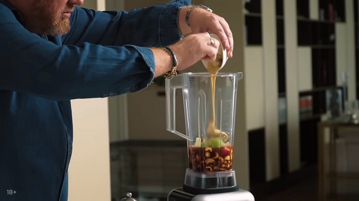 В блендер закладываем орехи и чеснок, добавляем соевый соус, апельсиновый сок, мицукан, мирин, сахар, протертые томаты, красный лук, немного нарезанного яблока и кунжутной пасты, пробиваем до однородной массы. -