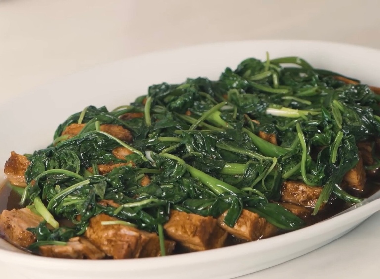 Зелень выкладываем поверх грудинки, и шикарное блюдо в паназиатском стиле готово! приятного аппетита.