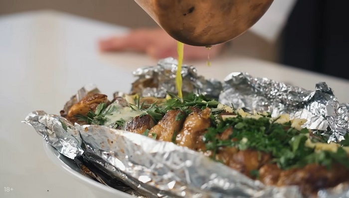 Поливаем мясо раскаленным сливочным маслом и праздничное блюдо от Шефа готово!
