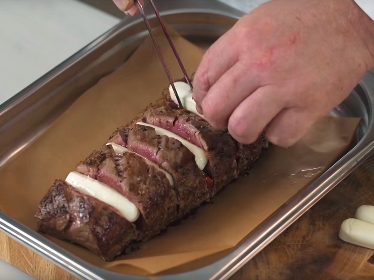 Запеченная вырезка со шпинатом и моцареллой - рецепт от Константина Ивлева