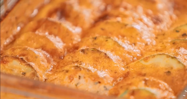 Отправим в духовку на 10-15 минут запекаться при температуре 200 градусов. Кабачки запечённые с сыром от шефа готовы!