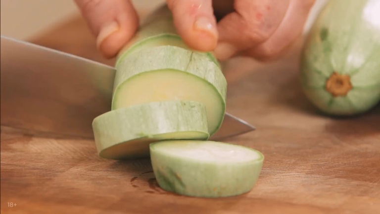 Кабачки нарезаем толстыми кружками. -