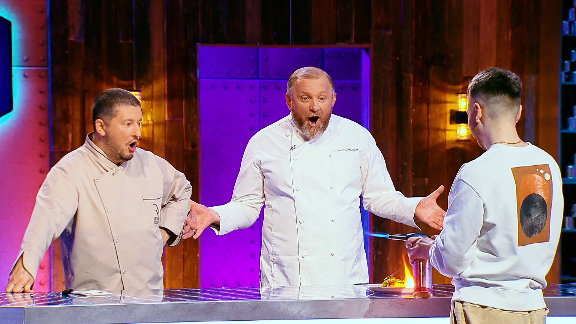 Профессиональные повара и любители продемонстрируют свои кулинарные навыки. Участники команд Рената Агзамова и Константина Ивлева приготовят чахохбили, бланкет из телятины, профитроли и блюда с северными ягодами. Чем повара будут удивлять своих наставников, покажет программа «Битва шефов».